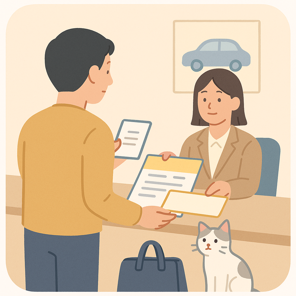 (양도증명서·매매계약서가 있는 경우, 그 내용을 토대로 담당자가 작성·확인하는 경우도 많습니다.) - 준비해 간 서류를 모두 제출하고, 담당자가