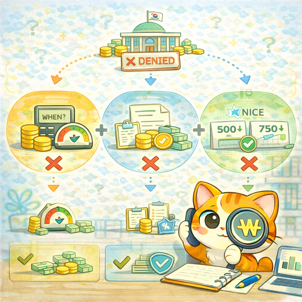 대출은 '나올 때'보다 부결됐을 때가 더 답답합니다. 보통 안내는 "가능 조건"만 나열하고 끝나는데, 실제로는 왜 안 되는지가 핵심이죠.